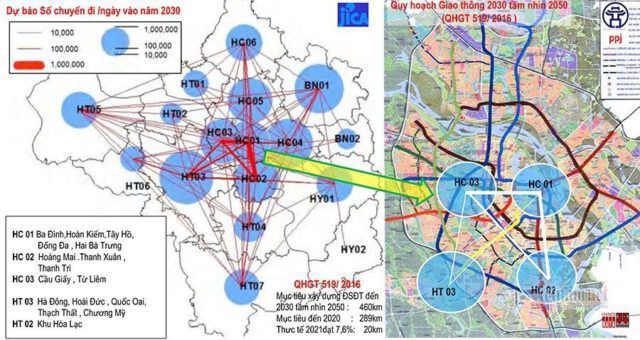 Năm 2016, JICA công bố Dự báo tới năm 2030, nhu cầu đi lại các khu vực Hà Nội cho thấy: 80% các chuyến đi trong ngày nằm trong 20% diện tích trung tâm Hà Nội.