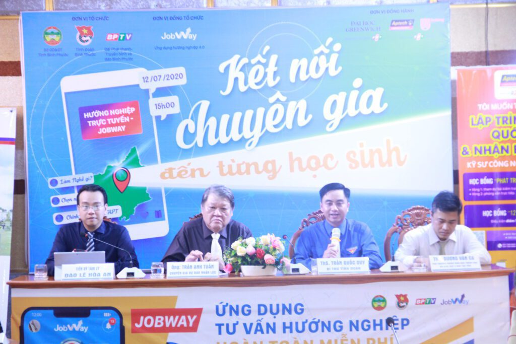 Chiều ngày 11/7/2020, Tỉnh Đoàn, Sở Giáo dục và Đào tạo, Đài Phát thanh -Truyền hình và Báo Bình Phước đã phối hợp với Trung tâm Ứng dụng Khoa học tâm lý và Hướng nghiệp JobWay tổ chức Chương trình Tư vấn hướng nghiệp trực tuyến cho học sinh THPT với chủ đề “Kết nối chuyên gia hướng nghiệp đến từng học sinh tỉnh Bình Phước”.