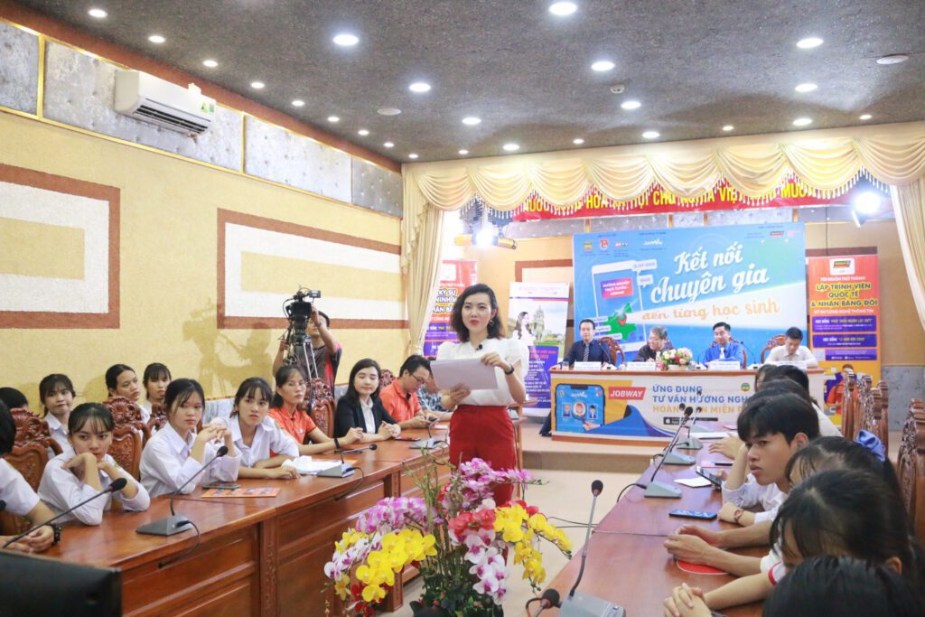 Thông qua các kênh này, các em học sinh đã có cơ hội tương tác ngay tức thì, đặt câu hỏi và nhận lời giải đáp các thắc mắc với các chuyên gia của chương trình. Được biết, trước khi Chương trình diễn ra, Ứng dụng hướng nghiệp JobWay (ứng dụng phù hợp với các dòng điện thoại thông minh) đã được triển khai đến học sinh THPT trên toàn tỉnh để hỗ trợ các em làm các bài trắc nghiệm tâm lý nhằm hiểu rõ về bản thân và tham khảo thông tin các ngành nghề, các trường Đại học, Cao đẳng…