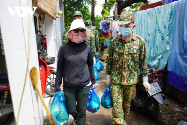 Ngày đầu thực hiện nhiệm vụ tại tâm dịch TP.HCM, cán bộ, chiến sĩ quân đội đã đến từng hộ hỗ trợ điều phối, trao tặng túi an sinh, lương thực, thực phẩm và vận chuyển nhu yếu phẩm cần thiết cho người dân.