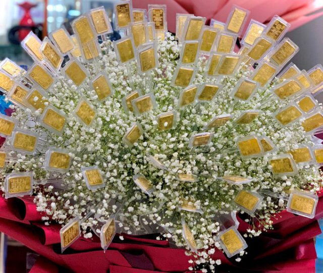 Người đàn ông ở Đà Nẵng đặt gia công bó hoa đính 100 lượng vàng 9999, trị giá hơn 7 tỷ đồng “tặng người thân” tại TP Cần Thơ, dịp 8/3.