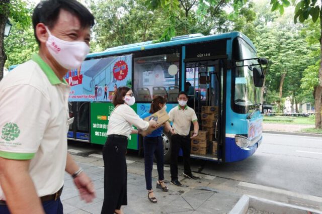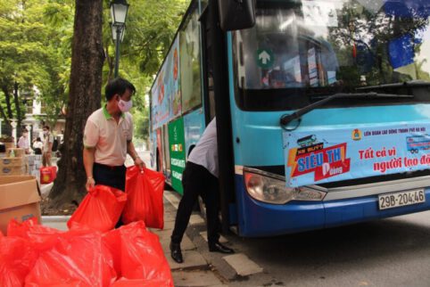 Thực hiện Kế hoạch số 39/KH-LĐLĐ ngày 21/7/2021 của Ban Thường vụ LĐTĐ TP. Hà Nội, chuyến xe buýt “Siêu thị 0 đồng” đầu tiên chở đầy ắp các mặt hàng thiết yếu như gạo; thực phẩm khô; khẩu trang, nước rửa tay, nước sát khuẩn…đã được xuất phát chuyển đến với người lao động bị ngừng việc, mất việc do ảnh hưởng bởi dịch bệnh ở các doanh nghiệp, khu công nghiệp, cụm công nghiệp, khu nhà trọ công nhân trên địa bàn Thủ đô.