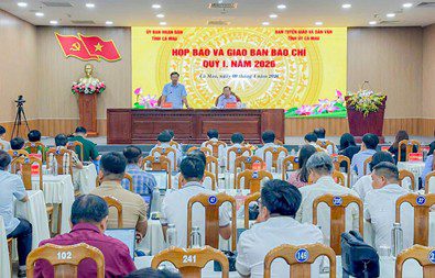 Ngày 09/04/2026 UBND tỉnh Cà Mau phối hợp với Ban Tuyên giáo và Dân vận Tỉnh ủy tổ chức Họp báo và giao ban báo chí quý I/2026, cung cấp thông tin toàn diện về tình hình kinh tế – xã hội những tháng đầu năm, đồng thời định hướng công tác tuyên truyền trong thời gian tới. Tại hội nghị, lãnh đạo tỉnh nhấn mạnh vai trò quan trọng của các cơ quan báo chí trong việc đồng hành cùng địa phương, phản ánh kịp thời, khách quan những kết quả đạt được cũng như những khó khăn, thách thức, qua đó góp phần định hướng dư luận, tạo sự đồng thuận trong xã hội.