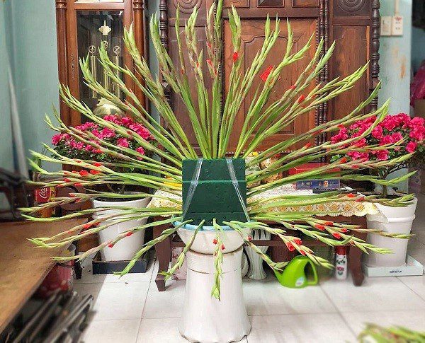 Bí quyết cắm hoa lay ơn đẹp và tươi lâu: Hoa lay ơn có thể cắm bằng xốp hoặc cắm trực tiếp vào nước. Khi cắm thẳng đầu bông sẽ thẳng, cắm xiên và ngang thì đầu bông sau khi hút nước sẽ tự cong lên. Nếu muốn hoa nở nhanh, cho nước ấm vào xốp thay vì nước bình thường. Ngược lại, nếu muốn hãm hoa nở chậm thì thêm vài viên đá lạnh vào xốp hoặc nước cắm hoa.