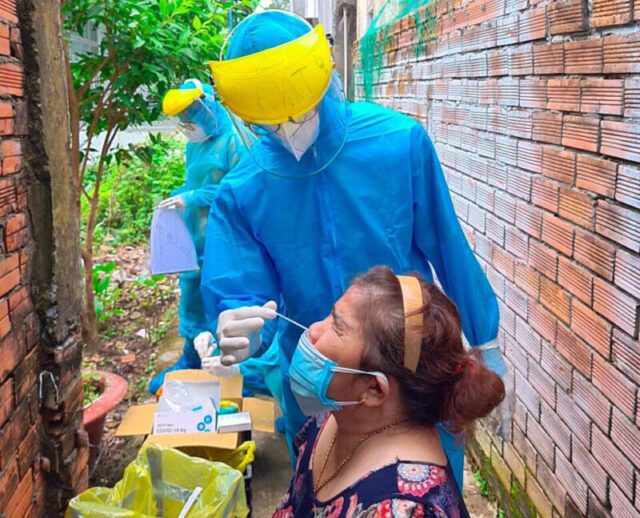 Sau đây là một số hình ảnh về Đội A phường Long Hoà (Bình Thủy, Cần Thơ) đi vào từng nhà dân để xét nghiệm do CTV Phạm Việt Cường ở trong đội xét nghiệm vừa chụp.