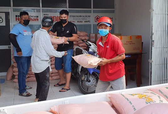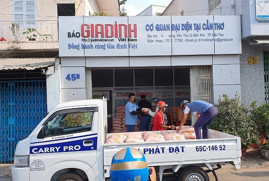 Cơ quan đại diện báo Gia đình Việt Nam tại Cần Thơ trong chiều 29/3 đã thuê xe tải nhỏ chạy các con đường trung tâm thành phố Cần Thơ tặng gạo và khẩu trang cho lao động nghèo đường phố.