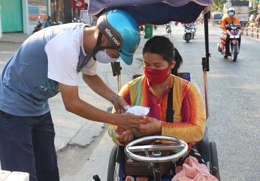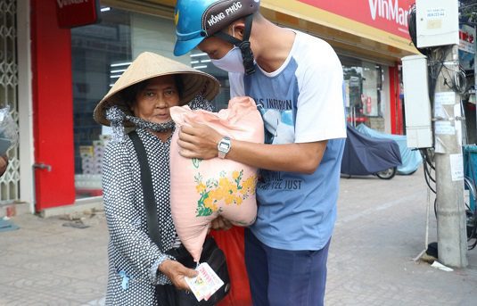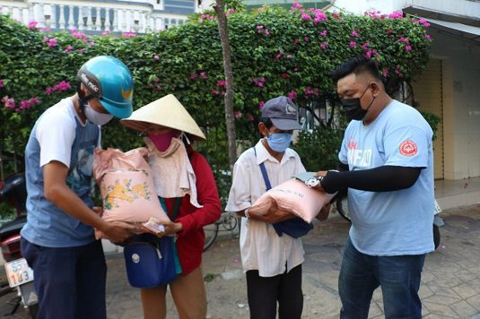 Phóng viên Quang Vinh trong nhóm đi tặng quà cho biết, lượng gạo hơn 2 tấn (đóng vào từng túi 10 kg) và 1.000 cái khẩu trang 3D kháng khuẩn có thể sử dụng nhiều lần (lên đến 30 lần giặt). Để tránh tập trung đông người, các phóng viên thuê xe tải nhỏ chạy vòng quanh những tuyến đường nội ô (không thể chạy ra ngoài bởi có chốt chặn, dễ bị cách li 14 ngày), thấy người lao động nghèo lang thang như bán hàng rong, vé số là dừng lại trao túi gạo kèm vài cái khẩu trang.