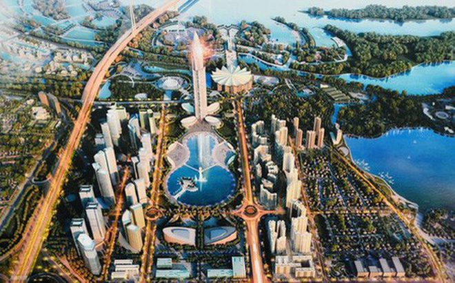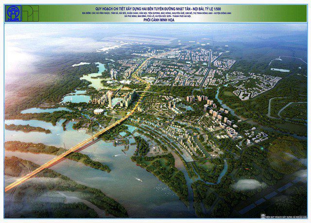 Phối cảnh tổng thể quy hoạch dự án thành phố thông minh hai bên trục đường Nhật Tân – Nội Bài.