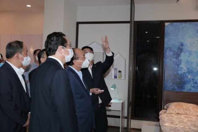 Thăm và làm việc với Cán bộ, công nhân viên công ty,Chủ tịch nước đánh giá rất cao hiệu quả công tác phòng, chống dịch COVID-19 của Rạng Đông, trong gần 2 năm không ai bị lây nhiễm, bị cách ly hoặc điều trị, tỷ lệ tiêm vaccine ở mức cao; Đồng thời kết quả SXKD rất ấn tượng: Năm 2020, doanh thu vẫn tăng trưởng 15%, 9 tháng đầu năm 2021 doanh thu vẫn tăng trưởng 12,8%, lợi nhuận tăng 11,5%, xuất khẩu tăng 47% so cùng kỳ.