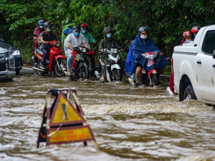 Quận Cầu Giấy được xem là nút giao thoa giữa nội thành và ngoại thành. Vào thời điểm tan tầm, tất cả mọi người đổ xô ra đường, mật độ phương tiện di chuyển qua khu vực này dày đặc, nhiệt độ tăng cao. Khi khối không khí đang chứa một lượng hơi nước lớn, lại gặp nguồn nhiệt đó, sẽ bị đẩy lên cao. Hơi nước gặp lạnh ngưng tụ lại thành các hạt nước và rơi xuống thành mưa. Đó cũng là lý do các cơn mưa lớn thường diễn ra vào các buổi chiều tối”, ông Hồng phân tích.