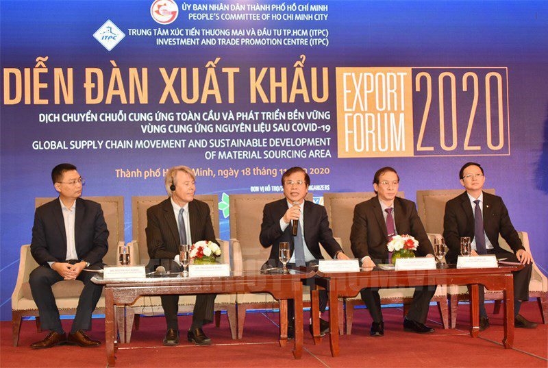 Sáng 18/11, Trung tâm Xúc tiến Thương mại và Đầu tư TPHCM (ITPC) tổ chức Diễn đàn xuất khẩu 2020 với chủ đề “Dịch chuyển chuỗi cung ứng toàn cầu và phát triển bền vững vùng cung ứng nguyên liệu sau Covid-19”. Tham dự có Phó Chủ tịch Thường trực UBND TPHCM Lê Thanh Liêm; đại diện các cơ quan ngoại giao; cộng đồng doanh nghiệp (DN) xuất khẩu.