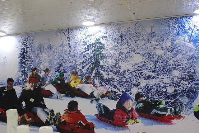 Khu vui chơi trượt tuyết ở Khoang Xanh Suối Tiên là một trong những khu trò chơi thu hút được sự tham gia của đông đảo đối tượng từ trẻ em đến người lớn.