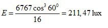 - Tọa độ của điểm tính độ rọi: X = h.tan@ = 4tan600 = 6,93m