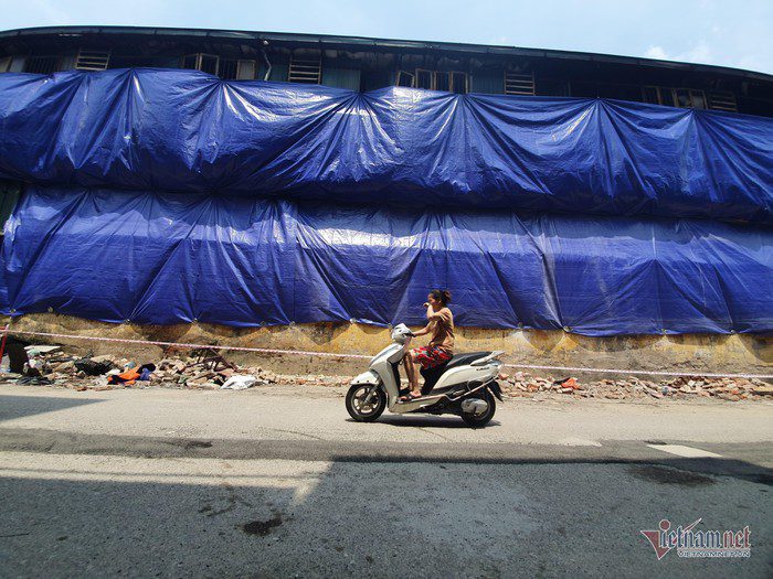 Che phủ bạt toàn bộ khu vực tiếp giáp với khu nhà dân, ngày 4/9 hoàn thành.