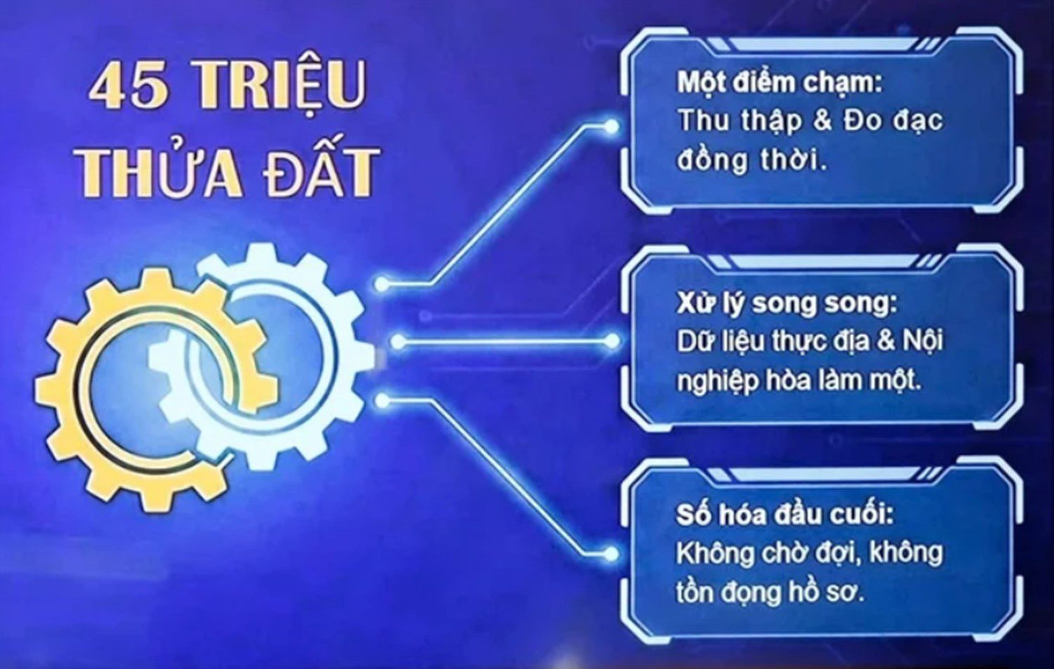 Kế hoạch từ 1/4 đến 31/12/2026, cả nước tập trung rà soát, làm sạch toàn bộ cơ sở dữ liệu đất đai đã có; Đo đạc, lập bản đồ địa chính; Đăng ký đất đai; Lập hồ sơ địa chính và xây dựng cơ sở dữ liệu đất đai. Sau khi làm sạch dữ liệu, sẽ đồng bộ ba khối thông tin và đối khớp tự động giữa thông tin người sử dụng đất, chủ sở hữu tài sản với cơ sở dữ liệu quốc gia về dân cư ở Bộ Công an quản lý. Việc kết nối, chia sẻ dữ liệu nhằm nâng cao hiệu quả quản lý, giảm thủ tục hành chính, tăng tính minh bạch và phục vụ người dân, doanh nghiệp.