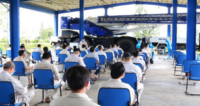Từ chiều ngày 15/7, Ban chỉ đạo phòng chống dịch bệnh COVID-19 (BCĐ) tại Công ty đã tiến hành kiểm tra kháng nguyên Sars-CoV-2 cho toàn bộ ĐHV cũng như nhân viên phục vụ tại nhà ăn, lái xe và nhóm bảo vệ. Căn cứ vào kết quả xét nghiệm âm tính của tất cả các mẫu vào lúc 17h30 cùng ngày, Ban lãnh đạo Công ty và tập thể CBCNV Công ty đã an tâm tiếp tục tiến hành theo phương án.