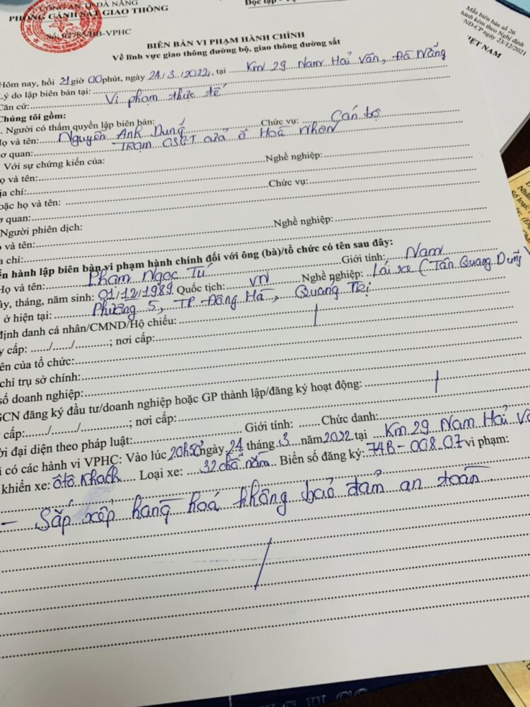 CSGT Trạm cửa ô Hòa Phước lập biên bản lái xe vi phạm