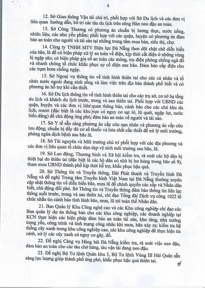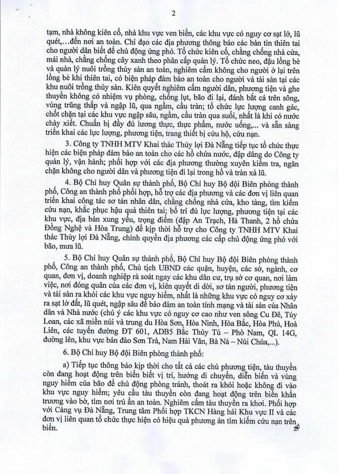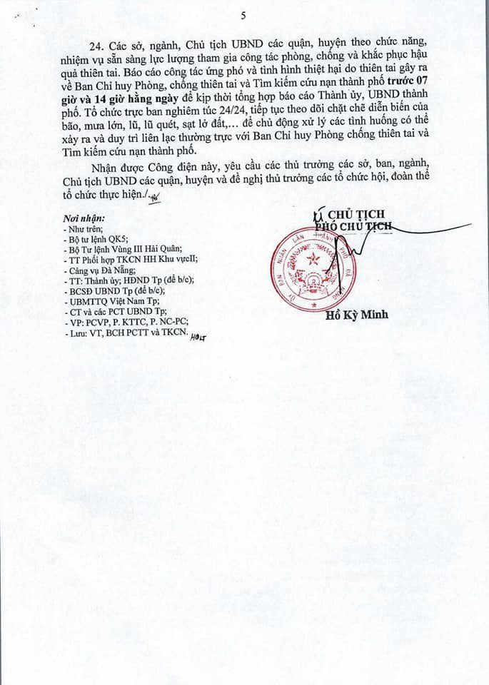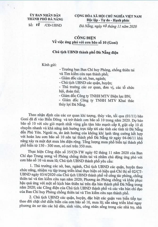 Công điện về việc ứng phó với cơn bão số 10 (có tên Goni) của Chủ tịch UBND thành phố Đà Nẵng ban hành hành sô 08 ngày 3/11/2020 về phòng chống cơn bão nguy hiểm.