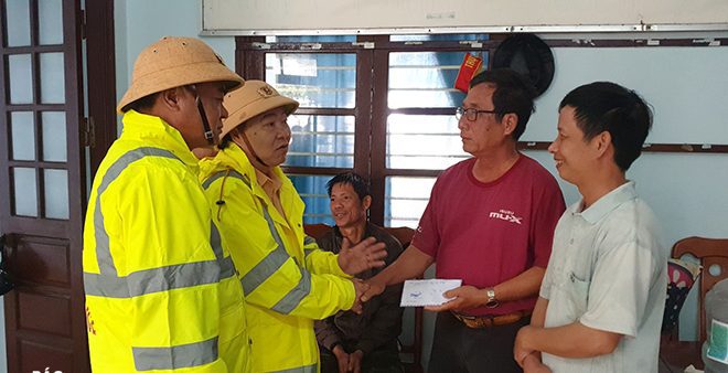 Tại đây, Đại tá Phan Ngọc Truyền, Trưởng phòng CSGT CATP Đà Nẵng đã tặng kinh phí cho các hộ dân để bổ trợ cải thiện thêm suất ăn trong thời gian trú bão; đồng thời căn dặn Chỉ huy Trạm phải quan tâm, chăm lo cho các hộ dân, nhất là người già, phụ nữ, trẻ em, người thân, ruột thịt của mình, động viện, san sẻ để bà con yên tâm trú bão.