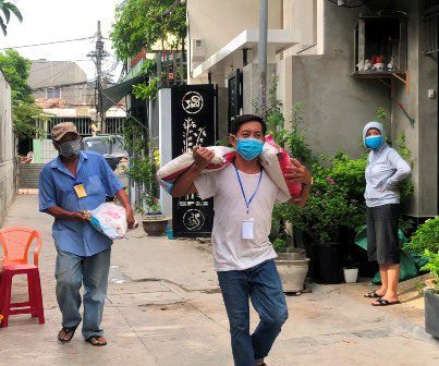 Từ những lời kêu gọi và tấm lòng anh chị bạn bè ở hải ngoại đóng góp hơn 10.000 USD ngay lập tức anh gửi về cho người có trách nhiệm. Anh Lê Quang Thụ -Tổ trưởng dân phố 37, P. Mân Thái, quận Sơn Trà TP Đà Nẵng cùng thành viên Lê Văn Trường, Lê Quang Hùng, Hồ Thăng Dũng là những Tổ trưởng dân phố; Ban công tác mặt trận, mua 20 tấn gạo, cùng anh chị em trong đội Tình nguyện viên trực tiếp đến từng hộ phát gạo cho bà con trong khu vực Mân Lập đông 1,2,3,4,5,6, Mân Lập tây 1,2,3, mỗi hộ 10kg gạo và thực phẩm khác.