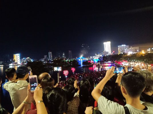 Trong đêm khai mạc, khán giả không những ngồi xem trến các khán đài để chiểm ngưỡng những giây phút thăng thiên của pháo hoa hai đội Việt Nam và Nga mà còn đứng, ngồi xem trên các tuyến đường, cây cầu Rồng, Thuận Phước, sông Hàn, những toà nhà khách sạn cao, nơi mà khán giả có thể phóng tầm mắt nhìn thấy. Theo quan sát của phóng viên, sự hiện diện có mặt của các lực lượng chức năng, như CSGT, CSTT, CSCĐ từ sớm trước giờ khai cuộc để phân luồng, điều tiết giao thông không để xảy ra ùn tắc giao thông cục bộ.