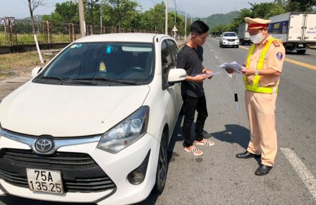 Tại đường Tạ Đăng Bữu, Tổ TTKS Trạm CSGT Cửa Ô Hòa Hiệp, Đại úy Đặng Ngọc Tài, Trạm phó đã phát hiện 2 trường hợp vi phạm xe ô tô con BKS 75A-135.25 do anh Nguyễn Viết Thành (SN 1996, trú tại Phú Vang, Thuận An, TT.Huế) điều khiển chở 3 khách từ Huế đi Đà Nẵng, lái xe thừa nhận thu tiền chiều đi và về 1.000.000 đồng, lái xe không xuất trình được Giấy CN kiểm định.