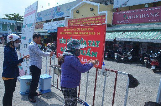 Tại chợ Cẩm Lệ, quận Cẩm Lệ, thành phố Đà Nẵng, trao đổi với ông Nguyễn Hữu Chước, Đội trưởng Đội chợ Cẩm Lệ cho biết: “Chúng tôi đã nghiêm cấm các mặt hàng không thiết yếu kinh doanh, treo bảng tuyên truyền, thường xuyên cho anh em đi kiểm tra, nhắc nhở các chủ quầy, cũng như bà con khi đến chợ phải tuân thủ theo quy định để phòng chống dịch Covid-19 các ngày vừa qua; hôm nay, hết lệnh cách ly xã hội, các quầy được buôn bán trở lại và chúng tôi vẫn tiếp tục thực hiện các biện pháp phòng, chống dịch như luôn đeo khẩu cả ngày khi mua bán tại chợ cũng như khi vào chợ, phải sát trùng, rửa tay, hiện tại chợ có 6 điểm đặt xung quanh khu vực chợ nơi ra vào…”.