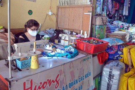Chị Phan Thị Lý Hương, thợ may chợ Cẩm Lệ tỏ bày: “Mấy tháng nay không may vá gì cả, chẳng thu được đồng nào, giờ hết cách ly xã hội có khách đến may vá nên rất vui, tôi cũng mong sao dịch bệnh không còn để mọi người trở lại làm việc bình thường như trước đây”.