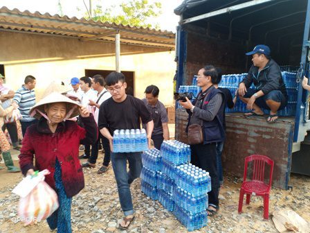 Sáng 24/10 Đoàn thiện nguyện bạn bè và gia đình MC Long Vân-Nguyễn Kimi Thụy Anh-hiện sống tại Orange California trao ủy quyền cho anh Nguyễn Văn Thạch Anh, người con quê hương Triệu phong-Quảng Trị đang sống làm việc tại TP Buôn Mê Thuột đã cùng phóng viên Ánh sáng&Cuộc Sống đến Thủy Tân-Hương Thủy; Thủy Điền, Quảng Thành, Quảng Điền, thôn Quán Hòa là những thôn sống tại vũng Trũng thấp thiệt hại nặng nề. Đoàn đã trao 410 xuất gạo, tiền, tặng hàng trăm áo phao cho bà con Quảng Trị. Đoàn tiếp tục ra vùng Lệ Thủy, Quảng Ninh, Minh Hóa, Tuyên Hóa (Quảng Bình) để ủng hộ bà con san sẻ những tấm lòng của những người con xa quê hương.