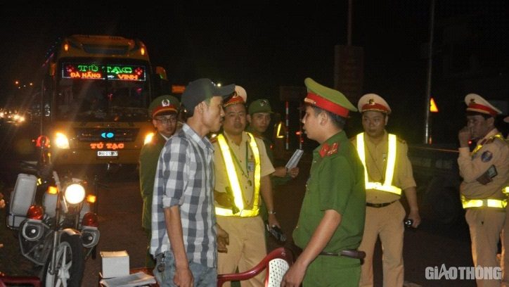 CSGT Đà Nẵng kiểm tra độ cồn ban đêm các lái xe đường dài