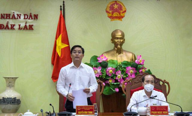 Trước tình hình dịch bệnh COVID-19 diễn biến ngày càng phức tạp, số ca dương tính SARS CoV 2 có chiều hướng chưa suy giảm. Sáng ngày 26/7, UBND tỉnh Đắk Lắk đã tổ chức họp trực tuyến cấp tỉnh dưới sự chủ trì của đồng chí: Nguyễn Đình Trung – Ủy viên Trung ương Đảng, Bí thư Tỉnh ủy; Đồng chí Phạm Ngọc Nghị – Phó Bí thư, Chủ tịch UBND tỉnh, Trưởng ban Chỉ đạo phòng chống dịch COVID-19 tỉnh.