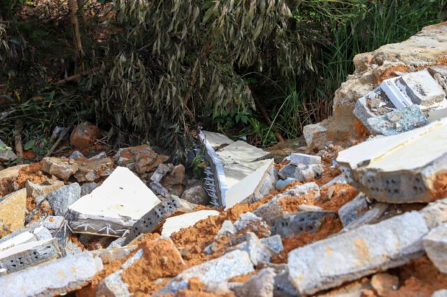 Bức tường rào được xây bằng gạch không nung cao gần 2m, móng đá với chiều dài gần 55m của Trường Phổ thông Dân tộc Bán trú Trung học Cơ sở Võ Nguyên Giáp (xã Cư Róa, huyện M’Đrắk, Đắk Lắk) bất ngờ đổ sập sau một trận mưa lớn, rất may không gây thiệt hại về người.