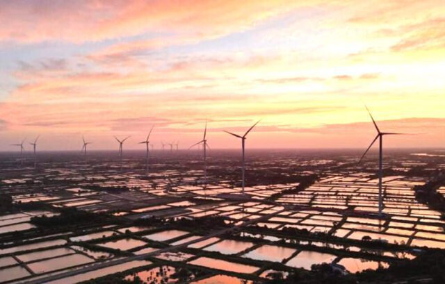 Điện gió trong ánh bình minh