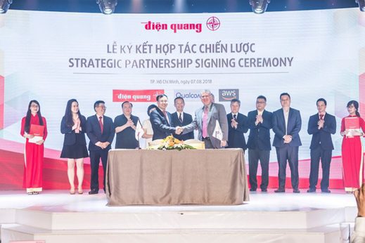 Để hiện thực hóa tầm nhìn trở thành đơn vị hàng đầu về công nghệ, bên cạnh việc đầu tư xây dựng nhà máy công nghệ cao, thành lập trung tâm nghiên cứu và phát triển hiện đại hay xây dựng khối IoT,… Điện Quang còn chủ trương hợp tác với các tập đoàn hàng đầu về công nghệ nhằm tiến xa hơn trên lộ trình nghiên cứu phát triển và sản xuất các dòng sản phẩm thông minh. Mới đây, Điện Quang ký kết thỏa thuận hợp tác chiến lược cùng Tập đoàn Qualcomm và Amazon Web Services – hai “ông lớn” trong lĩnh vực công nghệ và IoT.