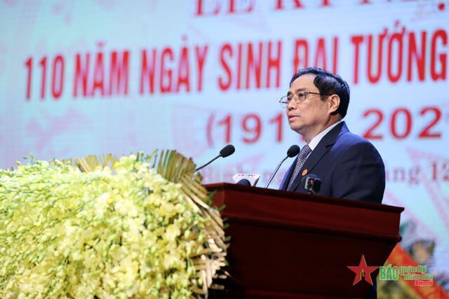 Sáng ngày 22/12, tại Quảng Bình, Ban Chấp hành Trung ương Đảng, Quốc hội, Chủ tịch nước, Chính phủ, Ủy ban Trung ương Mặt trận Tổ quốc Việt Nam và tỉnh Quảng Bình tổ chức lễ kỷ niệm 110 năm Ngày sinh Đại tướng Võ Nguyên Giáp (25/8/1911-25/8/2021). Tại buổi lễ, Đồng chí Phạm Minh Chính, Ủy viên Bộ Chính trị, Thủ tướng Chính phủ trình bày Diễn văn kỷ niệm 110 năm Ngày sinh Đại tướng Võ Nguyên Giáp. Cổng Thông tin điện tử Chính phủ xin trân trọng giới thiệu Diễn văn do Thủ tướng trình bày tại lễ kỷ niệm.