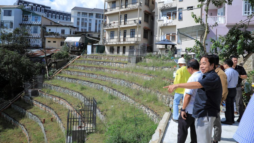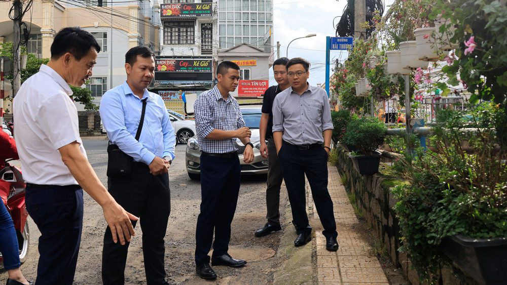 Điểm đầu tiên các chuyên gia khảo sát thực tế là tại hiện trường Khu vực sạt trượt đất trên đường Khe Sanh và đường Hoàng Hoa Thám (Phường 10, TP Đà Lạt), tiếp đến là khảo sát ở khu vực các bờ taluy khá cao thuộc khu dân cư Số 5 (Phường 4, TP Đà Lạt).