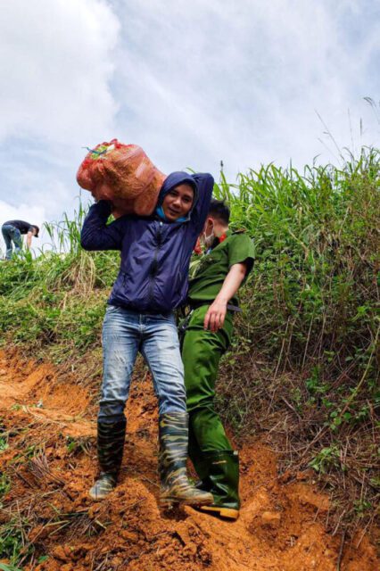 Niềm vui như được nhân lên gấp bội khi số hàng được huy động hàng tấn, hàng chục tấn. Khuôn mặt rạng ngời, tiếng nói, tiếng cười vang khắp cánh đồng cùng các chiến sĩ không quản ngại khó khăn, mặc dù địa hình dốc cao, trơn trượt hay gió lạnh nhưng tình người ấm áp lan toả khắp nơi.