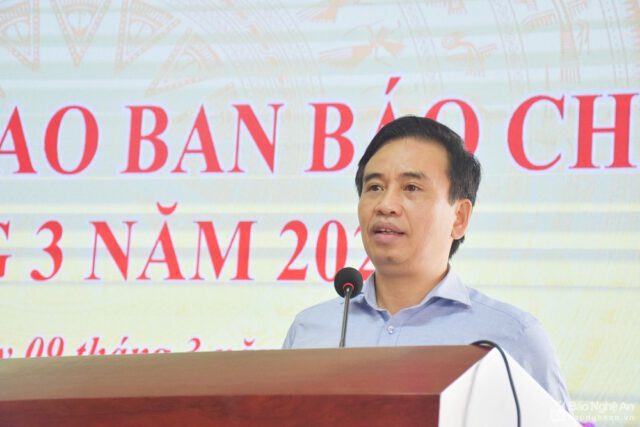 Đại diện lãnh đạo Ban Tuyên giáo Tỉnh ủy Nghệ An đề nghị các cơ quan báo chí cần đổi mới công tác thông tin tuyên truyền để phòng, chống hiệu quả dịch Covid-19 trong tình hình mới, tạo niềm tin cho người dân.