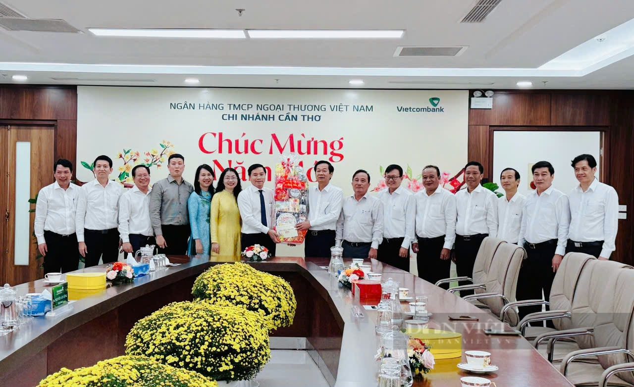 Đồng chí Đỗ Thanh Bình, Ủy viên BCH TW Đảng, Bí thư Thành ủy Cần Thơ gửi quà mừng năm mới đến Vietcombank Chi nhánh Cần Thơ