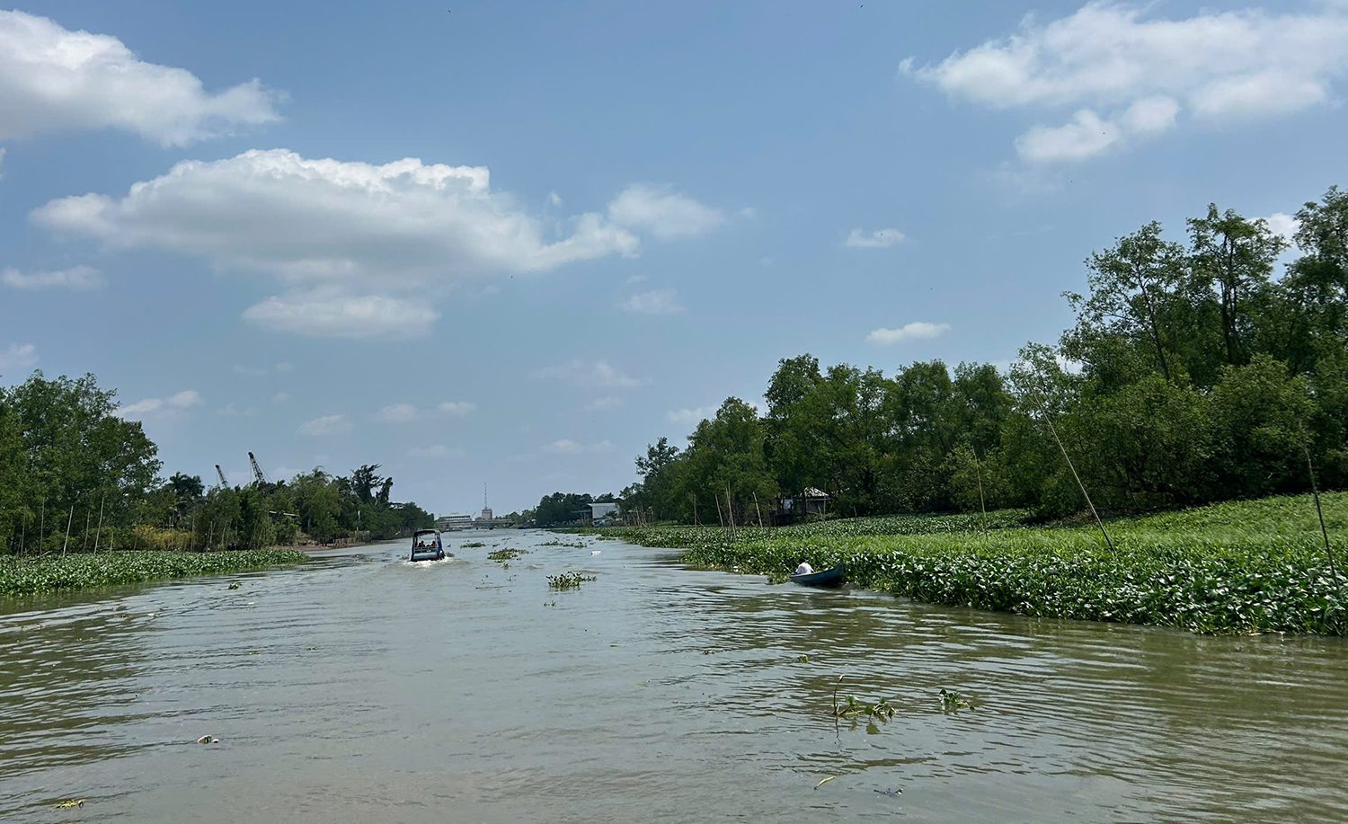 Sáng sớm ở bến Ninh Kiều, con tàu đưa đoàn ra sông Hậu mênh mông hùng vĩ, ngắm cảnh quan thành phố trên bờ có nhiều khách sạn nổi bật như Victoria, Mường Thanh; có Bến phà Cần Thơ – nơi gắn liền ký ức giao thông đường thủy vùng ĐBSCL một thời. Đi ngang Cồn Khương ngắm làng biệt thự ven sông và khu du lịch Vạn Phát, mà vài chục năm trước còn khá hoang sơ.