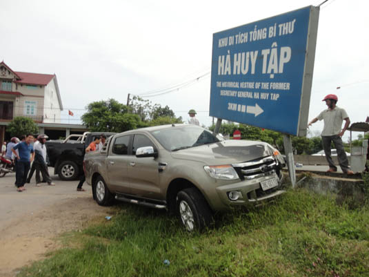Vào thời điểm trên, một phụ nữ đi xe mô tô BKS 38 H6- 5194 từ đường nhánh băng qua QL1 A thiếu quan sát, xe bán tải BKS 38 C- 02112 (chưa rõ danh tính tài xế) lưu thông hướng Bắc Nam không xử lý kịp đã tông vào xe máy, làm xe máy và người phụ nữ bay xa khoảng 30m bị thương nặng. Ngay lúc đó, một xe bán tải BKS 37C- 09586 chạy phía sau không làm chủ tốc độ đã tông thẳng vào đuôi xe 38C -02112 làm cho xe này bay thẳng vào đê dẫn nước và tông vào biển chỉ dẫn khu lưu niệm Hà Huy Tập.