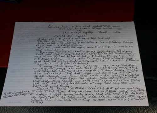2 tờ giấy viết tay của ông Tuấn ( bà Thanh trình bày )