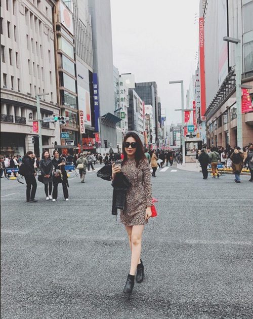 Hòa Minzy trong một chuyến du lịch tại xứ Phù tang