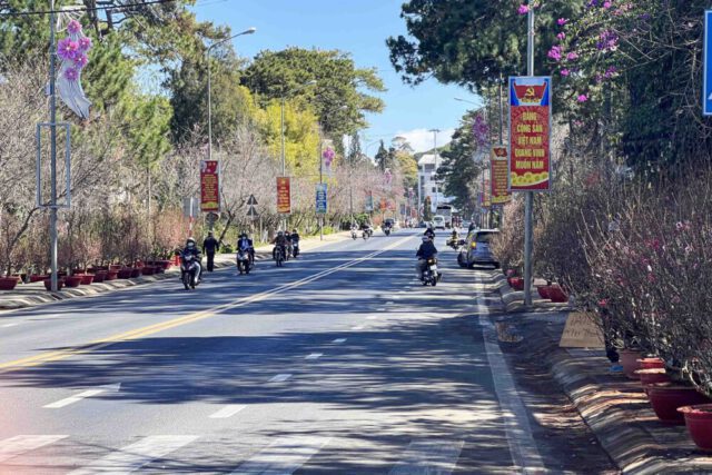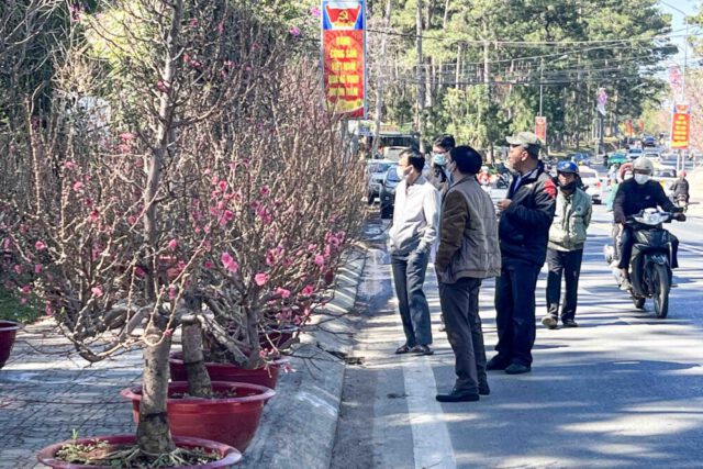 Những ngày trung tuần tháng chạp, nhiều hoa, cây cảnh hối hả đón khách, đào, mai và các loại hoa lan tấp nập tập kết tại các tuyến phố Đà Lạt để phục vụ tế nhâm dần 2022.