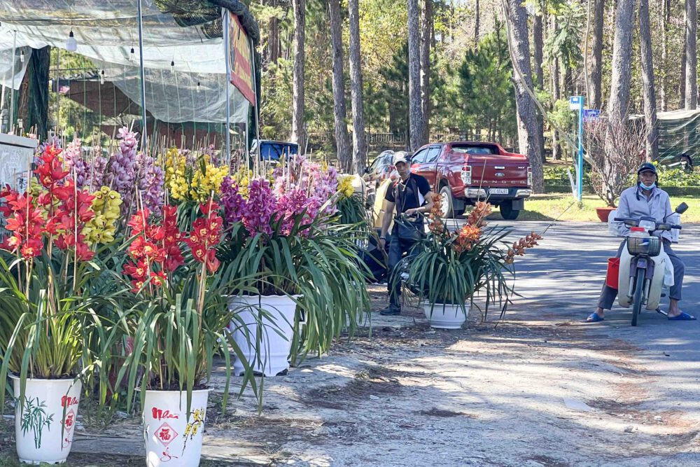 Hoa địa lan nhiều màu cũng được bày bán dọc nhiều tuyến đường của Đà Lạt