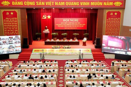 Tỉnh Nghệ An cũng phải khẩn trương cụ thể hóa Nghị quyết sát với thực tiễn, đây là cơ hội để Nghệ An có thể đạt được những chỉ tiêu tương đối cao; ví dụ GRDP tăng trưởng khoảng 10%/năm; năng suất lao động đạt được từ 10-11%/năm; thu nhập đầu người đạt được từ 7.500 đến 8.000 USD/đầu người; nông nghiệp còn khoảng 13-14% giá trị tuyệt đối. Và như vậy, hoàn thành các chỉ tiêu, mục tiêu Nghị quyết số 39-NQ/TW tạo được nền tảng vững chắc để Nghệ An phát triển nhanh, bền vững, toàn diện, thông minh, hiện đại. Làm được như vậy, mới xứng đáng với kỳ vọng của các thế hệ đi trước, của Bộ Chính trị, Ban Bí thư, của Nhân dân cả nước, đặc biệt là Đảng bộ và Nhân dân Nghệ An.