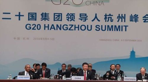 Tổng thống Mỹ Obama và Tổng thống Nga Putin ngồi hàng đầu cùng Chủ tịch Trun