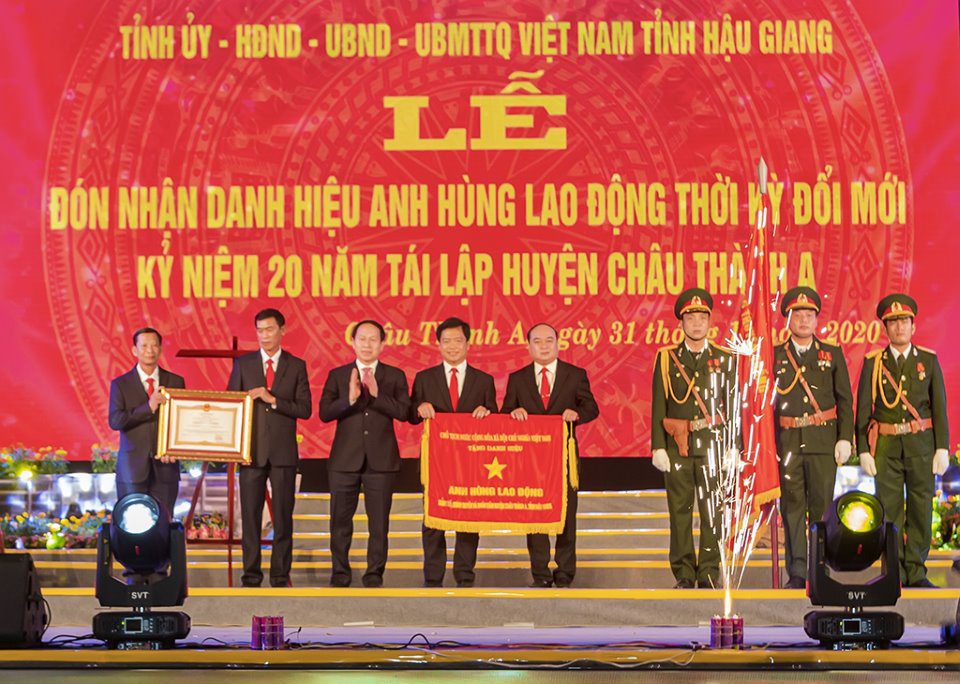 Tỉnh Hậu Giang tổ chức Lễ đón nhận danh hiệu Anh hùng Lao động thời kỳ đổi mới do Chủ tịch nước trao cho Đảng bộ và chính quyền và nhân dân Huyện Châu Thành A, tỉnh Hậu Giang.