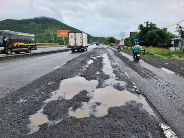 Qua thực tế ghi nhận của PV cho thấy, những đoạn nhiều ổ gà, ổ voi như: Tại Km1379+482 cầu Tân Phước (xã Vạn Long, huyện Vạn Ninh), Km1383+300 (xã Vạn Khánh, huyện Vạn Ninh), Km1390+550 (xã Vạn Bình, huyện Vạn Ninh), Km1415+450 (phường Ninh Đa, thị xã Ninh Hòa), Km1416+400 (phường Ninh Đa, thị xã Ninh Hòa), Km1431+300, Km1432+200, Km1432+700;…