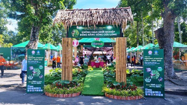Khu trưng bày sản phẩm công nghệ theo hướng hiện đại, bền vững, phát thải thấp được áp dụng trong chuỗi ngành hàng trọng điểm lúa gạo, thủy hải sản và trái cây
